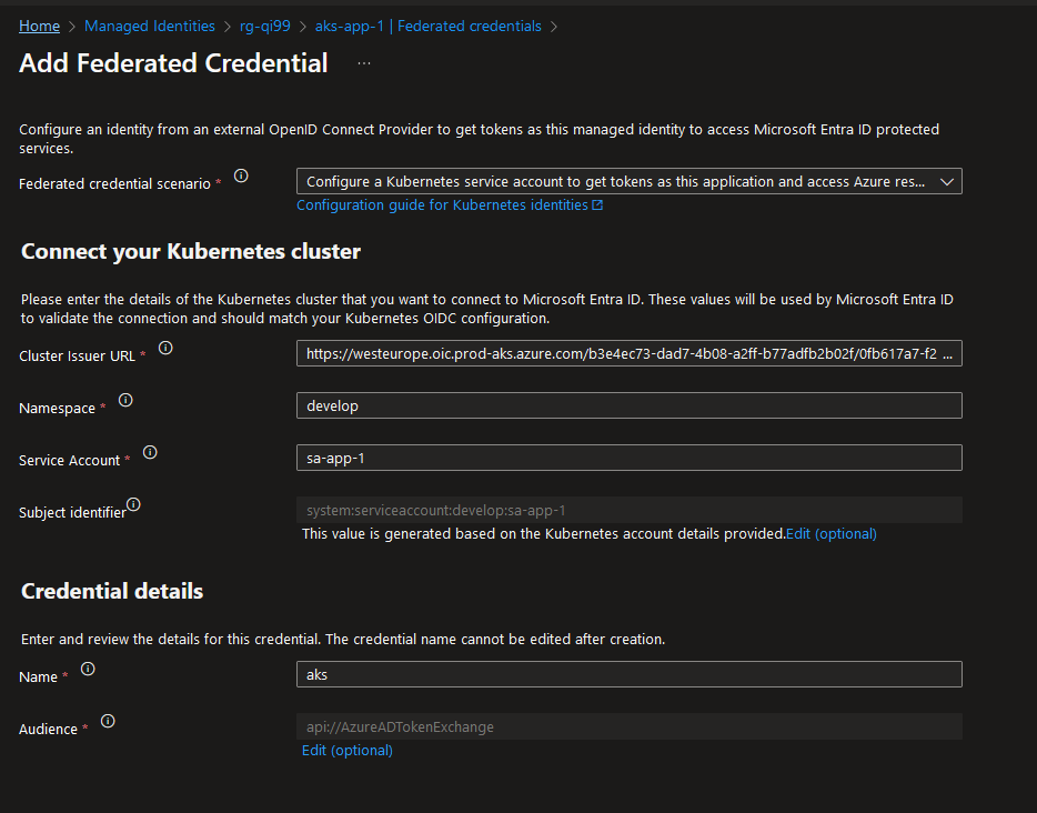La implementación de Azure Managed Identities junto con Azure Federated Identity Credentials y Azure AD Workload Identity proporciona una solución robusta y segura para gestionar el acceso a servicios de Azure a aplicaciones que se ejecutan en un cluster de Kubernetes.