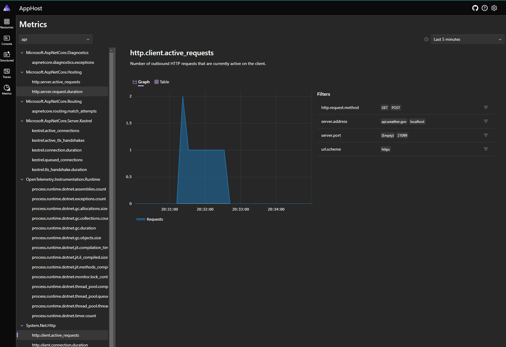 Cuando integramos el framework .NET Aspire en la solución tenemos acceso a un dashboard cuando ejecutamos la solución. Este dashboard nos va a proporcionar la siguiente información: