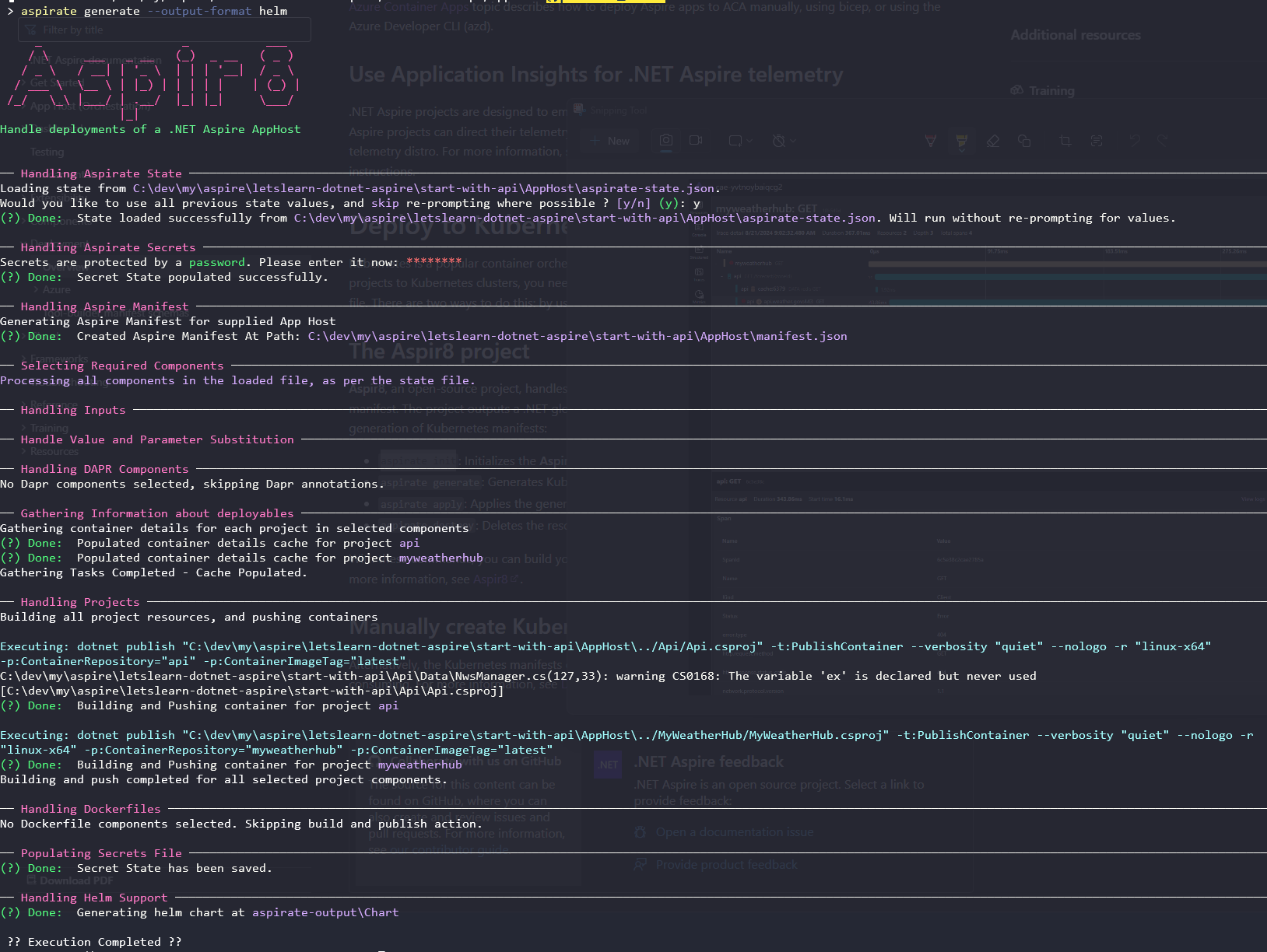 Un vez instalada la herramienta Aspir8, ejecutamos los siguientes comandos desde la carpeta de nuestro proyecto AppHost: