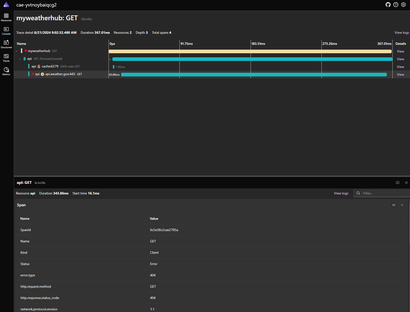 Trazas (traces): Podemos consultar el flujo de ejecución de cada una de las peticiones que ha recibido la aplicación para detectar posibles cuellos de botella y errores.